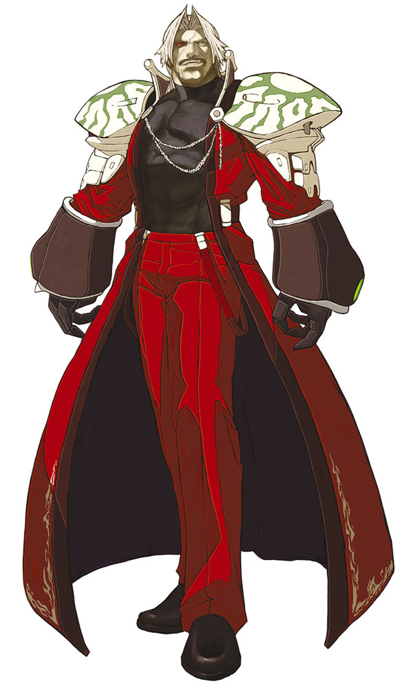 Aqui su aparecia fisica cambia con respecto a los juegos que aparece. Tiene el pelo ahora blanco, cuerpo todo claro, y una mano cibernetica. Del resto sigue igual.